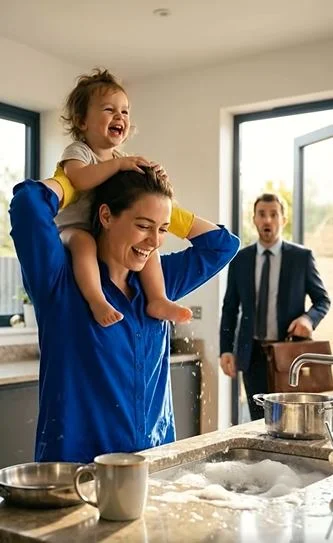 Loneliness has a particular weight in a large, empty house. For Michael Reynolds, a successful businessman, that weight doubled after his wife passed, as his toddler daughter, Ava, withdrew into a stubborn silence. He felt helpless. Then, one ordinary Tuesday, an inexplicable urge pulled him home in the middle of the day. He entered the kitchen to a miracle: the sound of his daughter’s laughter. There was Ava, perched beside the household assistant, Paige, both up to their elbows in dish bubbles. Ava was speaking—clear, confident words—as if the terrible quiet of the past months had never happened. Michael backed away, emotionally overwhelmed, grappling with a surge of hope tangled with insecurity.
