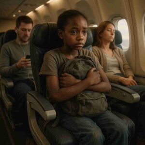 The flight from Atlanta to New York was meant to be just another ordinary journey. Passengers relaxed in their seats, some scrolled on their phones, while others asked for snacks and drinks. No one expected anything unusual. But in row 32, sat a thin twelve-year-old girl named Amara Johnson. She hugged a worn-out backpack tightly, as though it held her whole world. Her sneakers were torn, her clothes faded, and her eyes carried the sadness of a child who had seen too much. Amara was traveling alone after losing her mother, on her way to Brooklyn to live with an aunt she hardly knew.