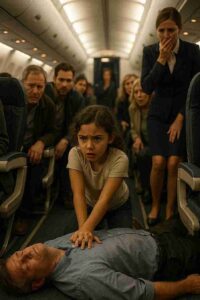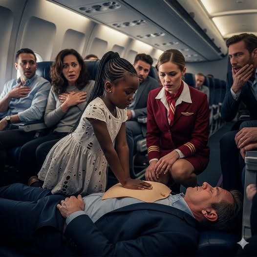Then, to everyone’s shock, Amara stood up. Her small body trembled, but the memory of her late mother teaching her CPR gave her courage. She pushed through the crowd and shouted, “Lay him flat!” Her voice was shaky but determined. Kneeling beside Richard, she tilted his head back and pressed her hands firmly on his chest. “One, two, three…” she counted, pushing rhythmically, giving breaths with focus and hope. The passengers could only watch in disbelief.
