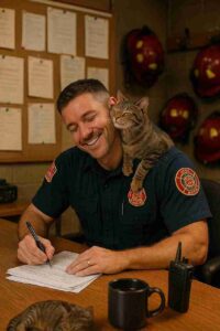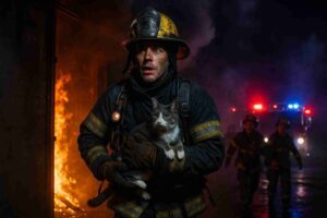 Lieutenant Mark Dervishi was the first to push through the north entrance. The heat was intense, his mask fogged, and the rafters creaked above him. As he crawled low, flashlight in hand, he expected silence—just fire and collapsing wood. Instead, he heard a faint, desperate sound. Not human. A soft, panicked cry. A meow.
