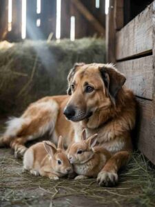 Even between a dog and a pair of orphaned rabbits. ❤️