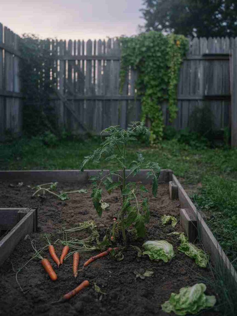 Chewed-through bean vines. Half-eaten carrots. Lettuce yanked up by the roots.