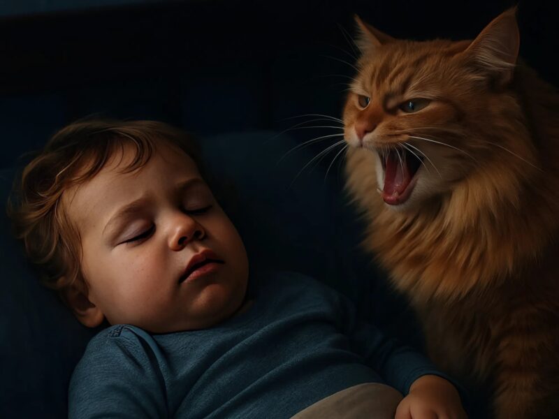 One night, my wife was woken by a sound that was more of a shriek. She rushed in to find Sandy arched on the bed, her fur on end, hissing directly at our peacefully sleeping child. The scene was unsettling. The room was quiet and still, but the cat was acting as if she were facing down a monster. We were genuinely frightened, worried that our beloved family cat had developed a dangerous aggression toward our daughter. We even started discussing the heartbreaking possibility of finding Sandy a new home.